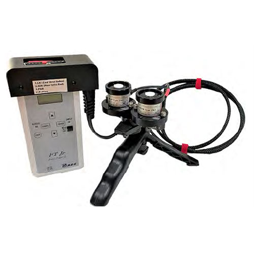 用途:MIJ-15LAI / P手持式葉面積指數測量儀是通過測量穿過植物冠層的太陽光的光譜比來計算葉面積指數(LAI)的。光合有效輻射(PAR,400-700nm)和近紅外光(NIR,700-1000nm)會在葉片內的葉綠素處發生反射和吸收,因此透射光的比例和葉面積指數相關,測試時不受天氣狀況影響,只需在冠層下方測量即可。