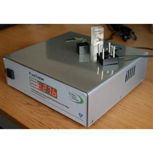 原理:將植物樣品浸泡到水浴中,然后加熱使溫度線性的從25℃升高到75℃(大約需要30分鐘),同時持續監測和評估水浴中電導的變化。通過獲得的電導/溫度曲線能夠F反應細胞中離子滲出的準確臨界溫度。這個臨界溫度可以衡量植物樣品的熱穩定性。在加熱的過程中,儀器還會監測植物的葉綠素熒光強度,用于評估主要光合過程和光系統的熱穩定性。