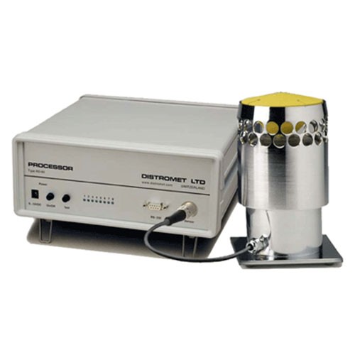 RD-80雨滴測量儀是一個能自動、連續測量雨滴大小的分類裝置。傳感器和處理器相連,傳感器暴露在雨中,當有雨滴降落沖擊到它敏感的表面時,它就會產生電脈沖。脈沖的振幅和降雨直徑有固定的關系。在處理器中,脈沖被劃分為127個直徑等級。處理器傳遞數據,以一個合適的格式記錄在文件里。為了得到統計學上的樣本數據,同時減少數據量,程序可以被減少到20個等級。