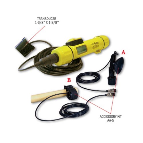 SM-5A外置傳感器聲納測深儀的傳感器位于12英尺(3.65米)的線纜末端,它可以被安裝在大型船舶的船體內部,也可以安裝在船體外部的桿子或船鉤上。如果您離水不夠近,無法使用SM-5便攜式聲納測深儀的話,SM-5A外置傳感器聲納測深儀將會很有用。它的線纜和配件是防水的,但是主機不可在水下使用,因此請勿放入水中。可選的附件套件包含(A)用于外部船體安裝的堅固的吸盤支架,以及(B)用于立桿或船鉤安裝的Velcro / 2-block附件。如果您需要一根長度超過12 英尺(3.65米)的線纜,我們可以為您定制。