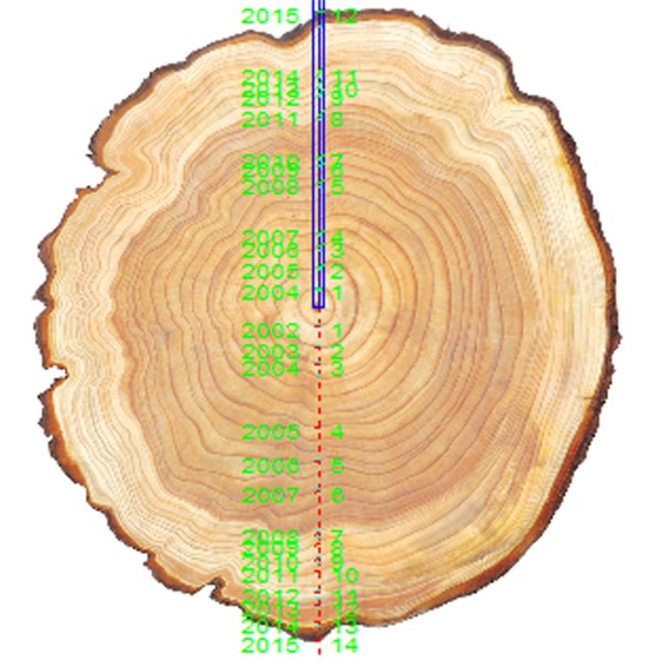 使用時采用高精度掃描設(shè)備對樣品成像,軟件自動測定年輪,對于不規(guī)則的樣品,可采用人工輔助圖像識別校準(zhǔn)以及輔助增/刪的方式保證結(jié)果的準(zhǔn)確度。可同時顯示年輪寬度、早材/晚材寬度、年輪數(shù)量。