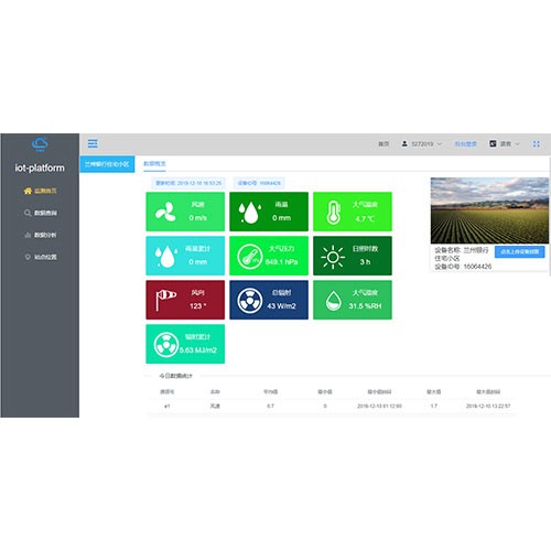 ? 實時監測風速、風向、雨量、溫度、濕度、氣壓、太陽輻射、土壤溫度、土壤濕度等要素參數