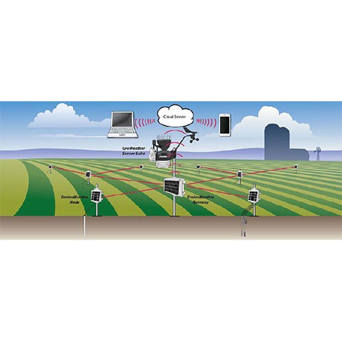 可以根據(jù)不同監(jiān)測(cè)范圍來(lái)定制整個(gè)環(huán)境監(jiān)測(cè)系統(tǒng)。每個(gè)網(wǎng)關(guān)可以掛載20個(gè)以上的節(jié)點(diǎn)。(如有需要)可以在系統(tǒng)中添加多個(gè)網(wǎng)關(guān)用來(lái)接收其他組節(jié)點(diǎn)傳來(lái)的數(shù)據(jù)。另外,DAVIS的GroWeather傳感器組件(ISS)也可以直接連接到網(wǎng)關(guān)上。