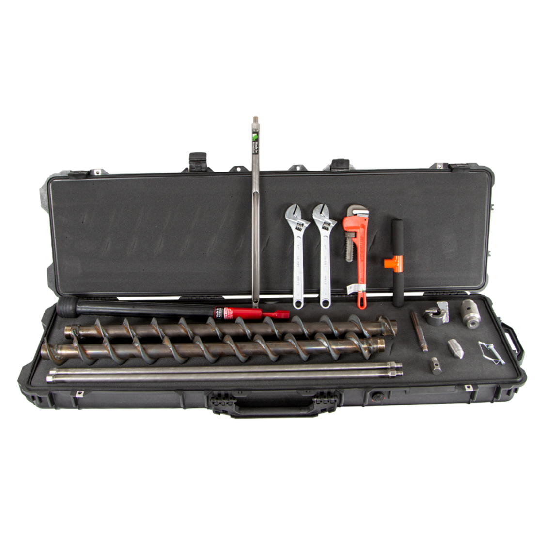 套件組成 | 214.20 - (1) 5/8英寸螺紋外螺紋至 SDS Max 電鉆適配器 409.51 - (2) 3英尺螺紋式延長(zhǎng)桿 409.75 - (1) 中空飛輪螺旋鉆切割尖端 409.61 - (1) 中空螺旋鉆頂蓋適配器 409.60 - (2) 3英尺中空螺旋鉆內(nèi)桿 409.58 - (1) 中空螺旋鉆內(nèi)塞 64106 - (1) 帶銷孔的中空桿固定器配件 24390 - (1) 線鎖 U 形夾銷 401.04 - (1) 7/8英寸 X 21英寸土壤探針,帶手柄 421.10 - (2) 12英寸活動(dòng)扳手 14327 - (1) 14英寸管扳手 400.99 - (1) 常規(guī)滑動(dòng)錘 430.01 - (1) 4英尺豪華手提箱 |